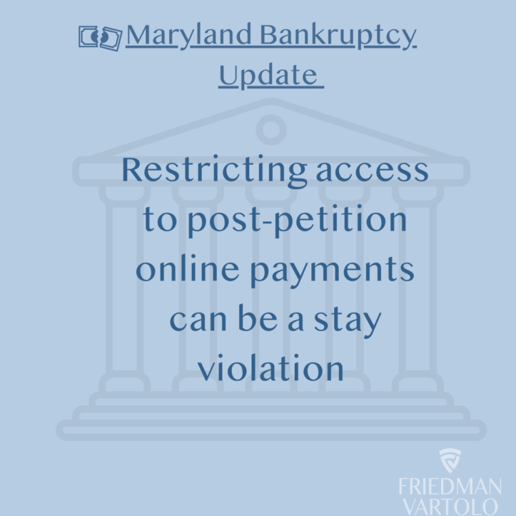 Maryland Bankruptcy Update – Restricting Access to Post-Petition Online Payments Can Be a Stay Violation