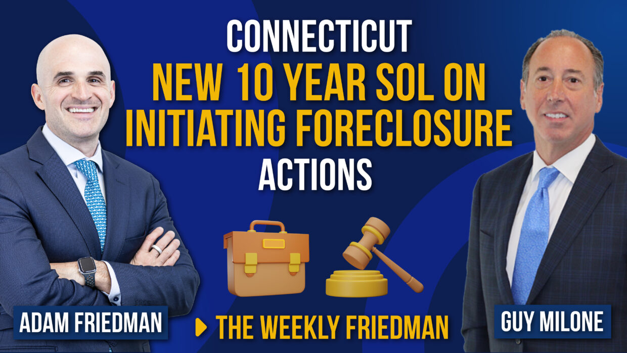 View Video Below: In this video we discuss Public Act 25-46’s sweeping changes to Connecticut’s foreclosure landscape. Adam Friedman and guest Guy Milone unpack the new […]