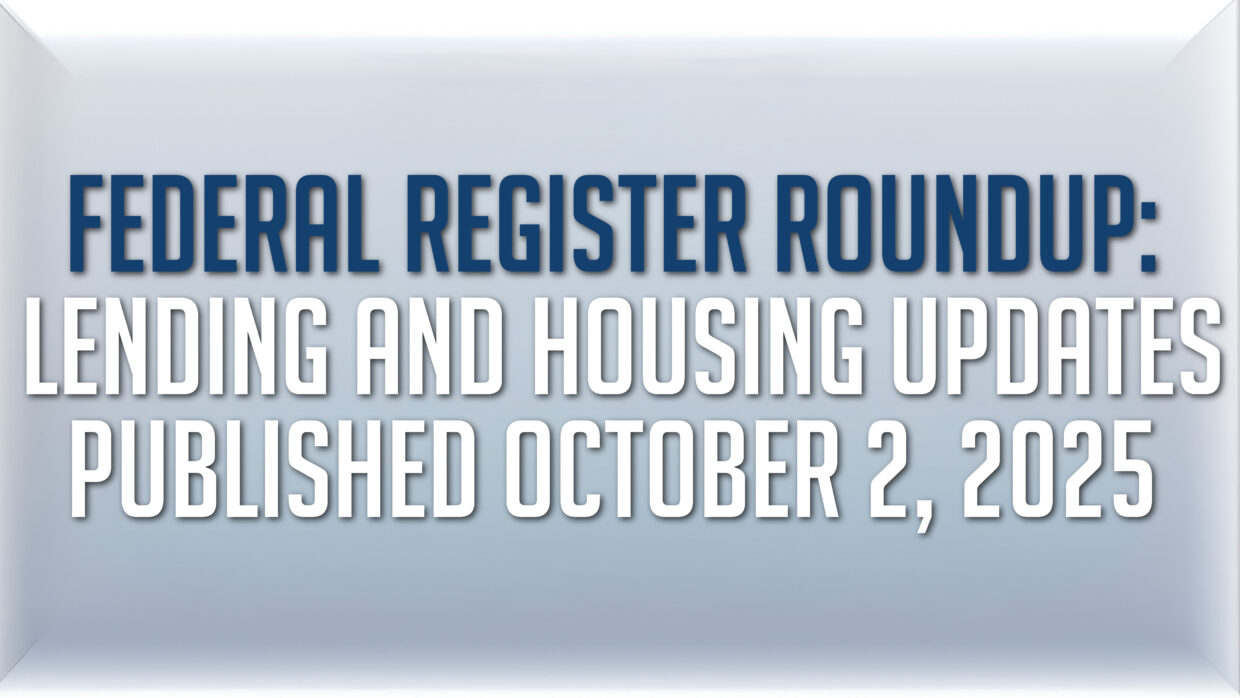 Federal Register Roundup: Lending and Housing Updates Published October 2, 2025